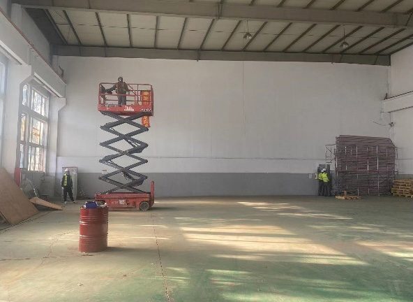 2023年3月14日現(xiàn)場(chǎng)開(kāi)始安裝設(shè)備,大型機(jī)地基基本完成。車(chē)間墻面涂料粉刷中。